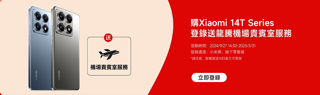 Xiaomi 14T Series 登錄送龍騰機場貴賓室服務