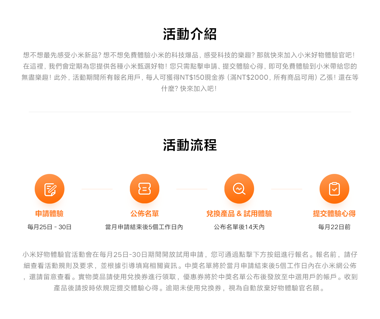 【Xiaomi 智慧攝影機 C400】中獎名單:6535xxx809、6521xxx073;【Xiaomi Buds 4 Lite 落日橙】中獎名單: 142xxx519、1761xxx891;商品兌換券已發放至中獎用戶登記的小米帳戶內,請儘快使用,逾期未使用視為自動放棄體驗名額。
